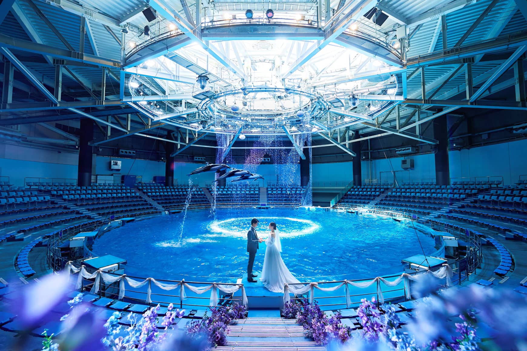 イルカや魚たちと映る幻想的な写真は、はじまりの日を彩る記念の一枚にぴったりです。